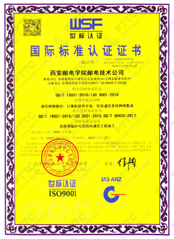 2014年西安郵電學(xué)院郵電技術(shù)公司獲得陜西省通信行業(yè)協(xié)會頒發(fā)的“優(yōu)秀通信工程施工獎”一等獎;